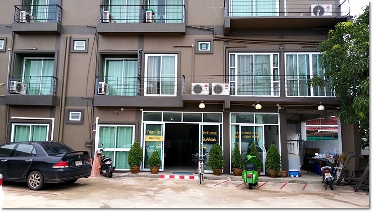 어느새 우리는 호흡이 척척 맞고 있었다. 마침내 막다른 골목에 다달아 좌회전 하자 우리가 가는 목적지 Prajak Place Hotel 간판이 보인다. 그런데 아무리 봐도 이건 호텔이 아니고 우리나라 연립 아파트 같다.