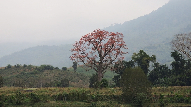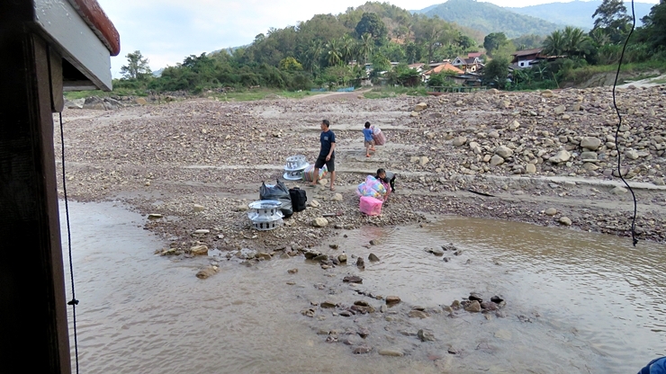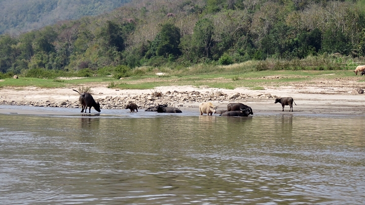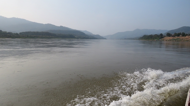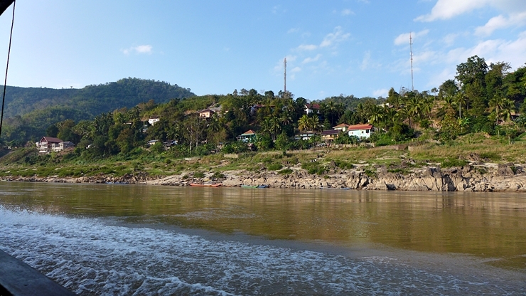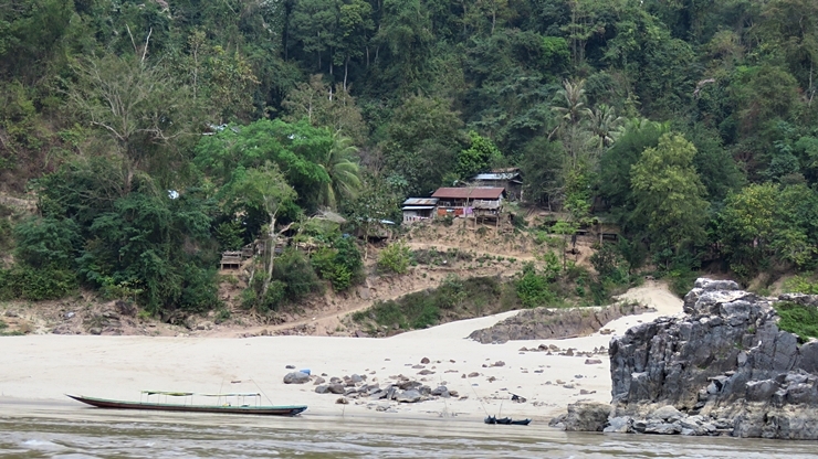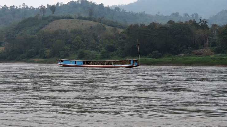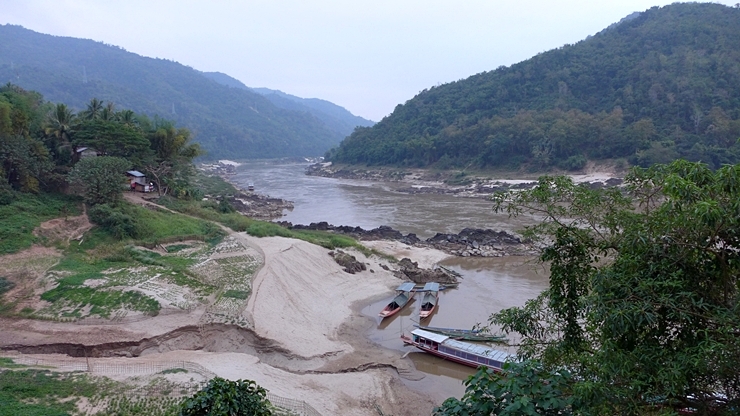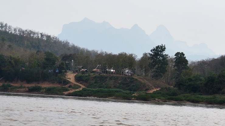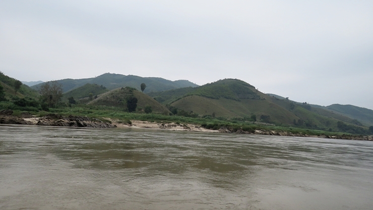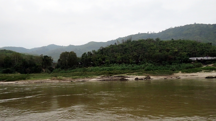 ▼ 어제 루앙프라방을 출발할 때는 양쪽 산의 지형이 급하고 계곡이 좁았는데 오늘은 강폭이 넓어지고 산들의 모습이 우리나라 동네 산처럼 순한 모습으로 바뀌었다.