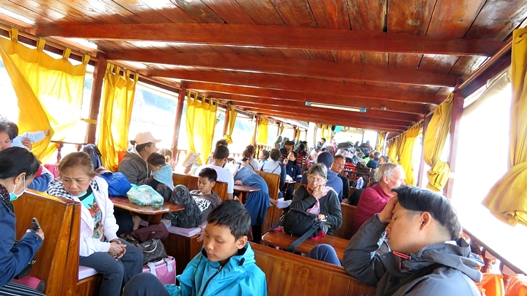 ▼ 8시 5분에 승선하여 8시 50분에 배가 출발한다. 승객은 만석, 외국 여행객들이 많다. 오늘 하루 8시간 배를 타고 가야한다.