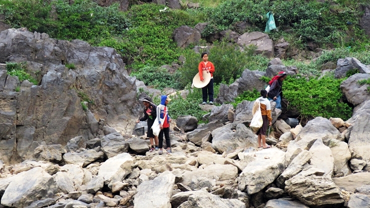 ▼ 위에서는 배에서 누가 내리나 확인하고 있다가 마중을 나온다. 옛날 우리날 시골의 풍경 모습 그대로다