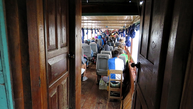 어제 보다 작은 배인데 양쪽에 2개씩 자동차 헌 의자로 자리를 만들어 놓아 어제 배 보다는 협소한 분위기다.