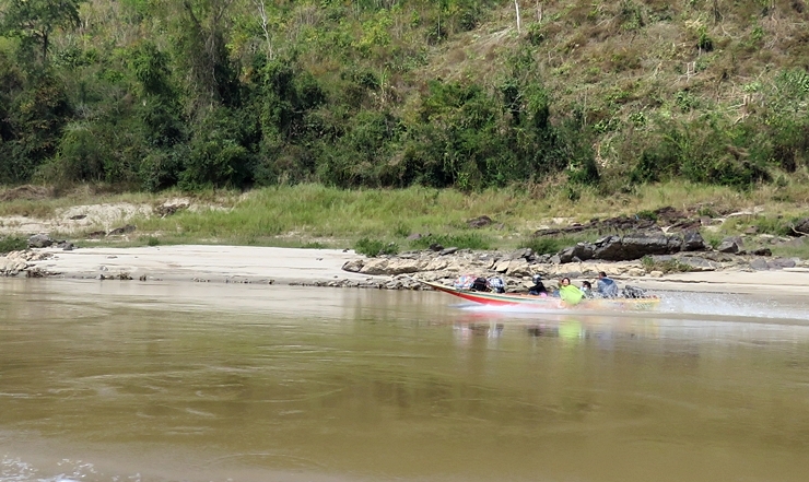 ▼ 배가 가는 방향의 왼쪽은 태국이고 오른쪽은 라오스다. 배는 국경을 따라 거슬러 올라가는데 양쪽 나라는 풍경도 비슷하고 분위기도 비슷해 국경이라는 느낌이 안든다. 배도 물길을 따라 양쪽 국경을 자유롭게 넘나들며 거침없이 강물을 거슬러 올라 간다.