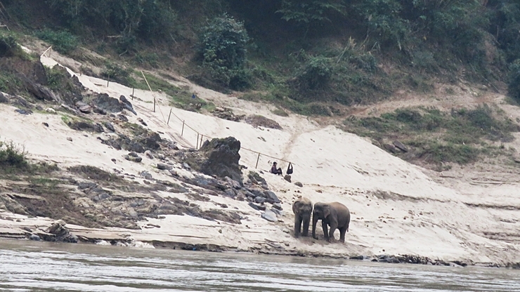 ▼ 강건너 태국에는 코끼리 사육장이 있는지 코끼리들의 모습이 보인다.