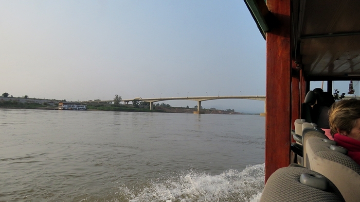 ▼ 목적지인 훼이싸이에 가까워 지면서 강변의 집들이 많이 보이고 농장의 모습도 보인다. 강을 연결하는 다리는 태국과 라오스를 연결하는 우정의 다리로 내일 태국을 갈 때 지나가야 할 다리다.