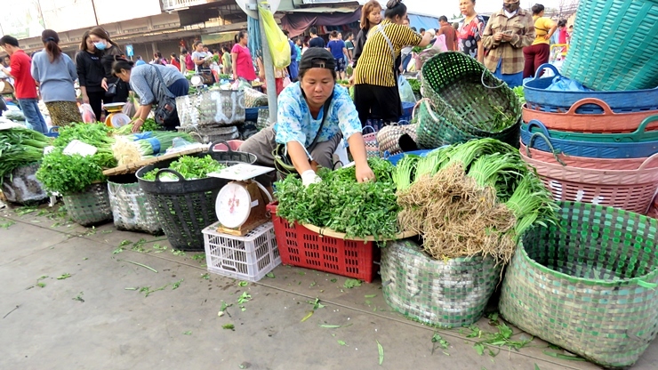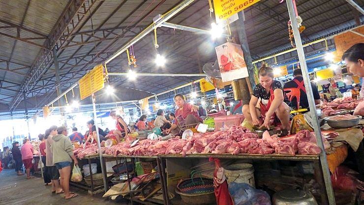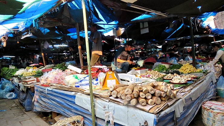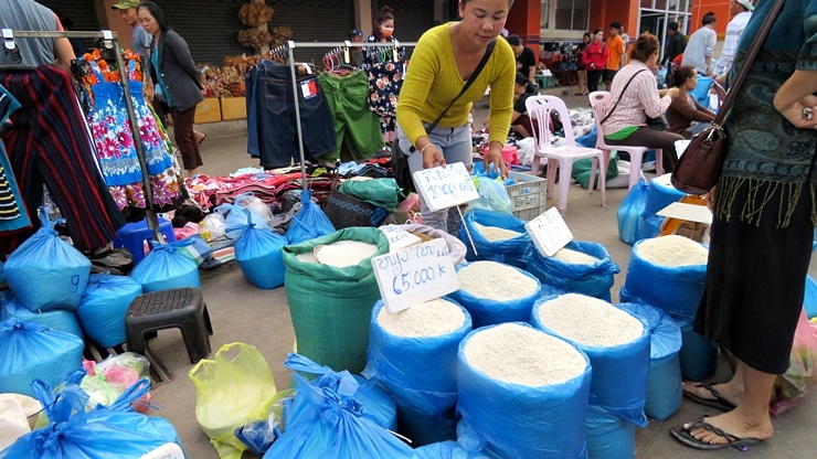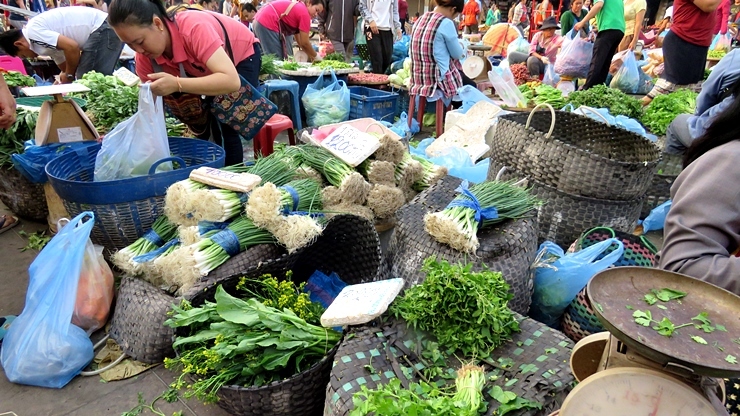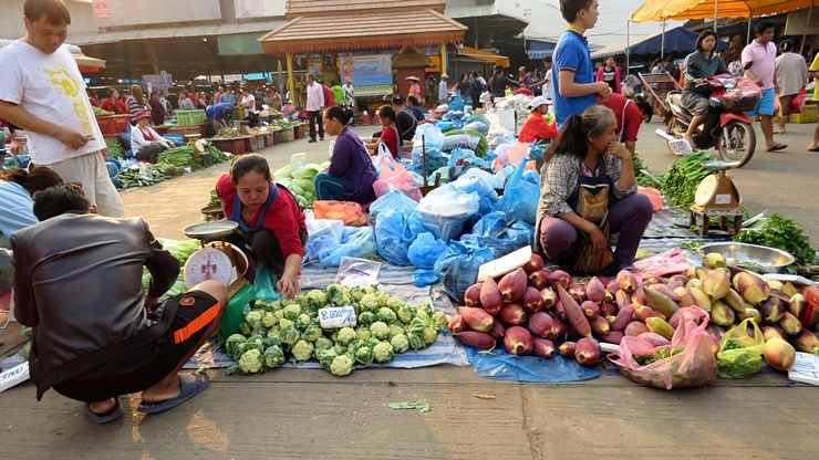 우리나라 70년대 수준의 라오스에서는 일반 서민들은 화려한 백화점이나 마트 보다는 재래시장이 아직은 더 익숙하다. 그래서 비엔티안 시내에는 지역마다 커다란 재래 시장이 하나씩 있고 길거리의 노점상들이 아직은 대세를 이룬다. 아침 일찍 오토바이나 자동차를 타고 출근하던 사람들은 길가의 포장마차나 이동식 노점에서 아침 거리를 사가지고 가는 것이 일반적인 풍경이다. 그래서 노점상들은 출근시간에 맞추어 먹기 간편한 음식들을 준비해서 팔고 난 뒤에 출근 시간이 지나면 철수를 한다.