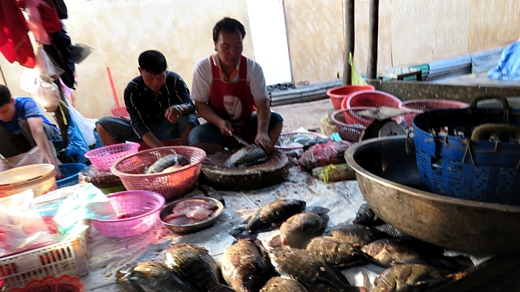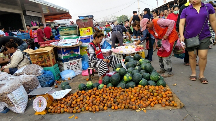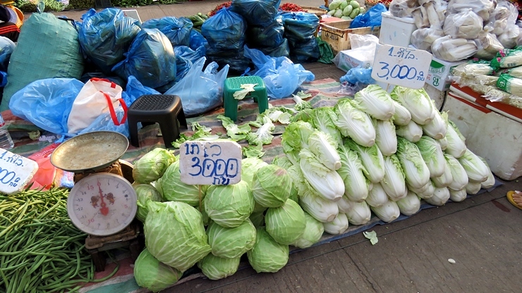 비엔티안 시내 중심가에 있는 Kua din Market는 우리나라의 남대문 시장 같은 곳이다. 상설 시장 외에 새벽 부터 8시반 까지 열리는 새벽시장은 활기가 넘친다. 아침 자전거 운동을 끝내고 7시에 시장엘 들렸다. 평상시엔 주차장으로 쓰는 곳을 차량통행을 금지 시키고 노점상들이 들어섰다. 오토바이들이 줄을 지어 안으로 들어간다. 안에는 오토바이 주차장이 따로 있어 오토바이는 주차장 까지 출입이 가능하다.