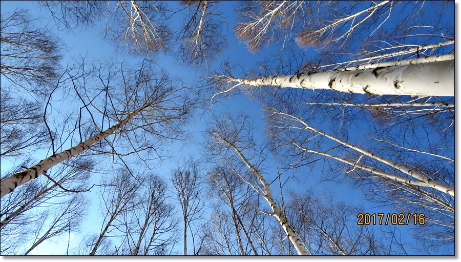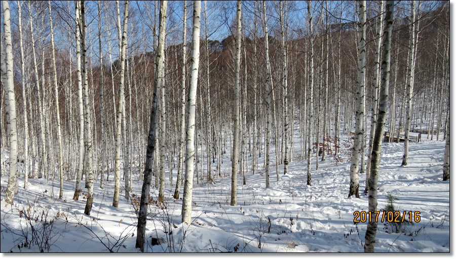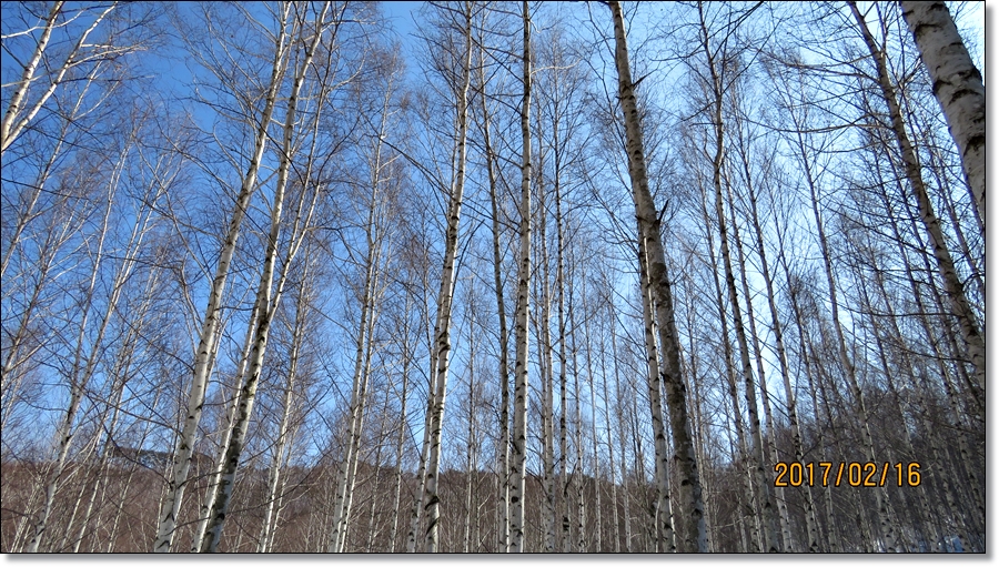 ▼흰 눈과 어우러진 하얀 표피의 자작나무 모습들이 참으로 인상적이다.