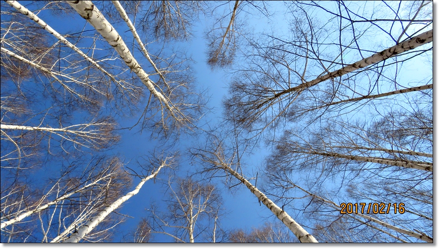 ▼ 푸른 하늘을 향해 손짓하는 자작나무들