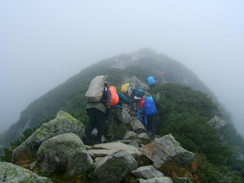 2시, 구름 속에 가린 호다카다케(穗高岳/2,983m)산장을 향하여 출발을 하였다.