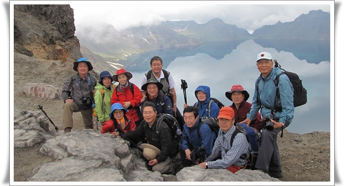 천지를 배경으로 다 같이...