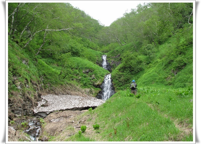 북한 땅을 뒤로하고 기념 촬영, 뒤끔치를 살짝들어 월경을 피했다. 잘못 했으면 북한땅엘 들어갈번 했다