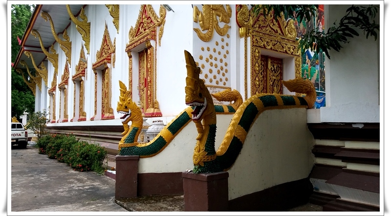 ▼ 라오스의 절은 우리나라와 달리 채색한 색상들이 참 화려하다. 더운 지방의 남방불교라 그런가?