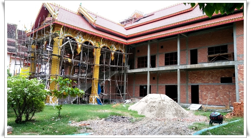 ▼ 한인쉼터 옆의 사찰인 "왓 쿤타" 다. 한인쉼터를 올때 뚝뚝이 기사에게 왓쿤타 가자고 하면 한번에 알아 듣는다. 절은 아직도 짓고 있는 중인데 돈이 없어 저런 모양으로 5년째 라고 하니 주지스님의 능력이 떨어지는가 아니면 부처님이 외면하시나?